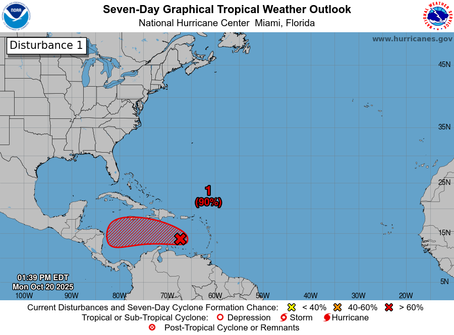 Tropical Storm Melissa: The tropical disturbance that was once Invest 98-L has become organized enough today to be considered a tropical storm. Because of this, the National Hurricane Center has upgraded Invest 98-L to Tropical Storm Melissa.
