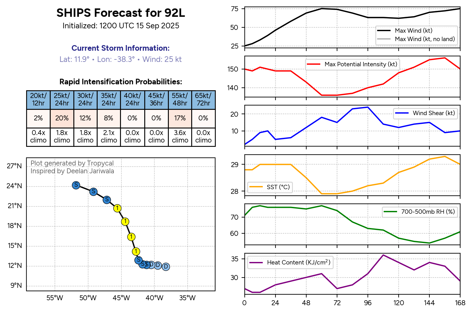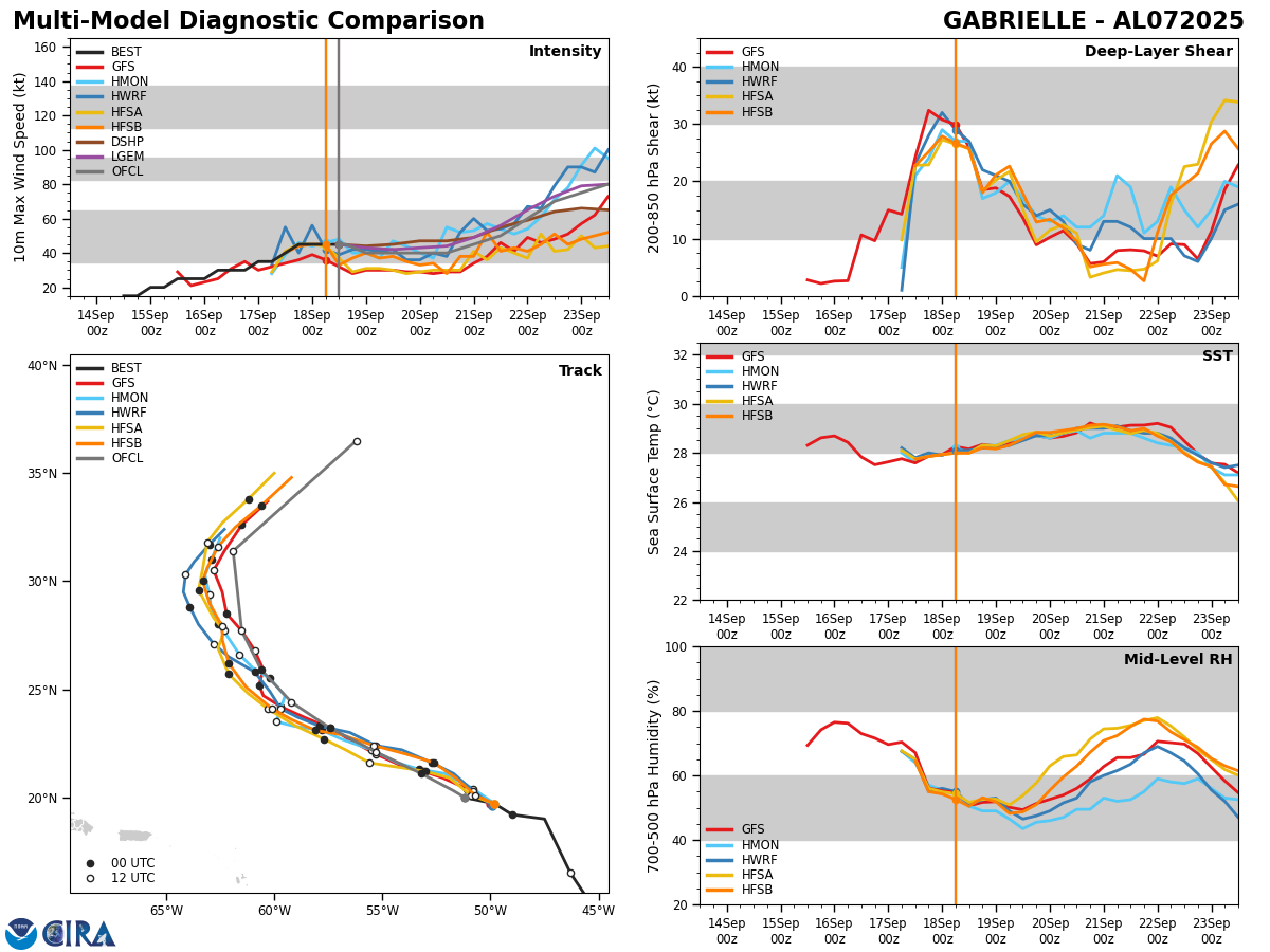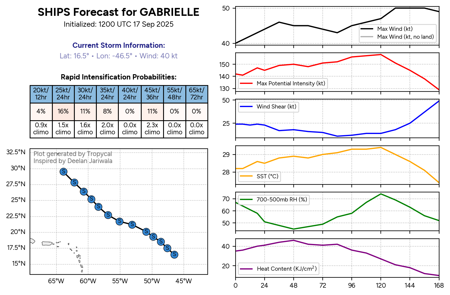 Tropical Storm Gabrielle: Gabrielle remains a sheared storm with most of the convection occurring to the east of its low-level center. That said, Gabrielle does look more organized than it did at this time yesterday.