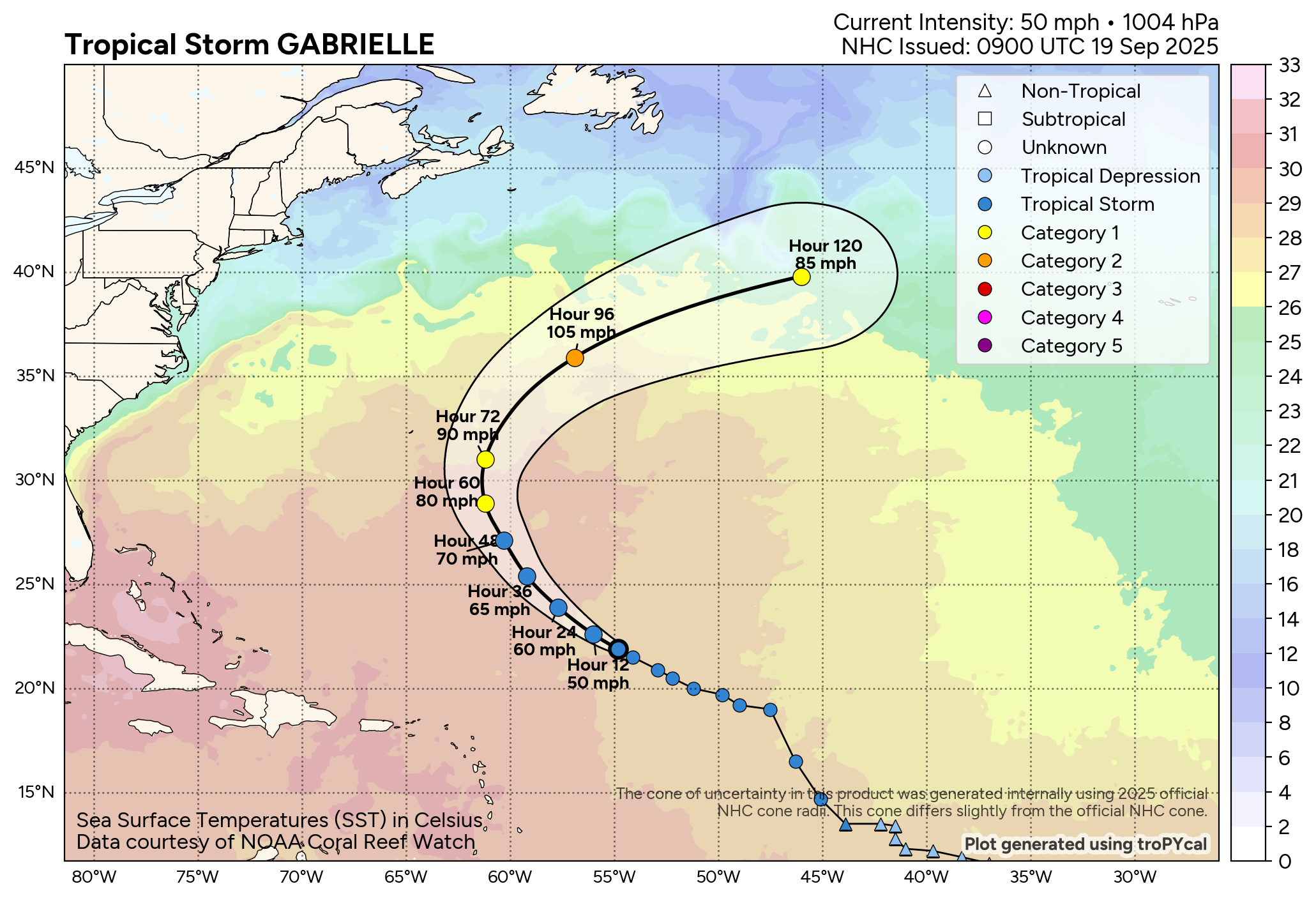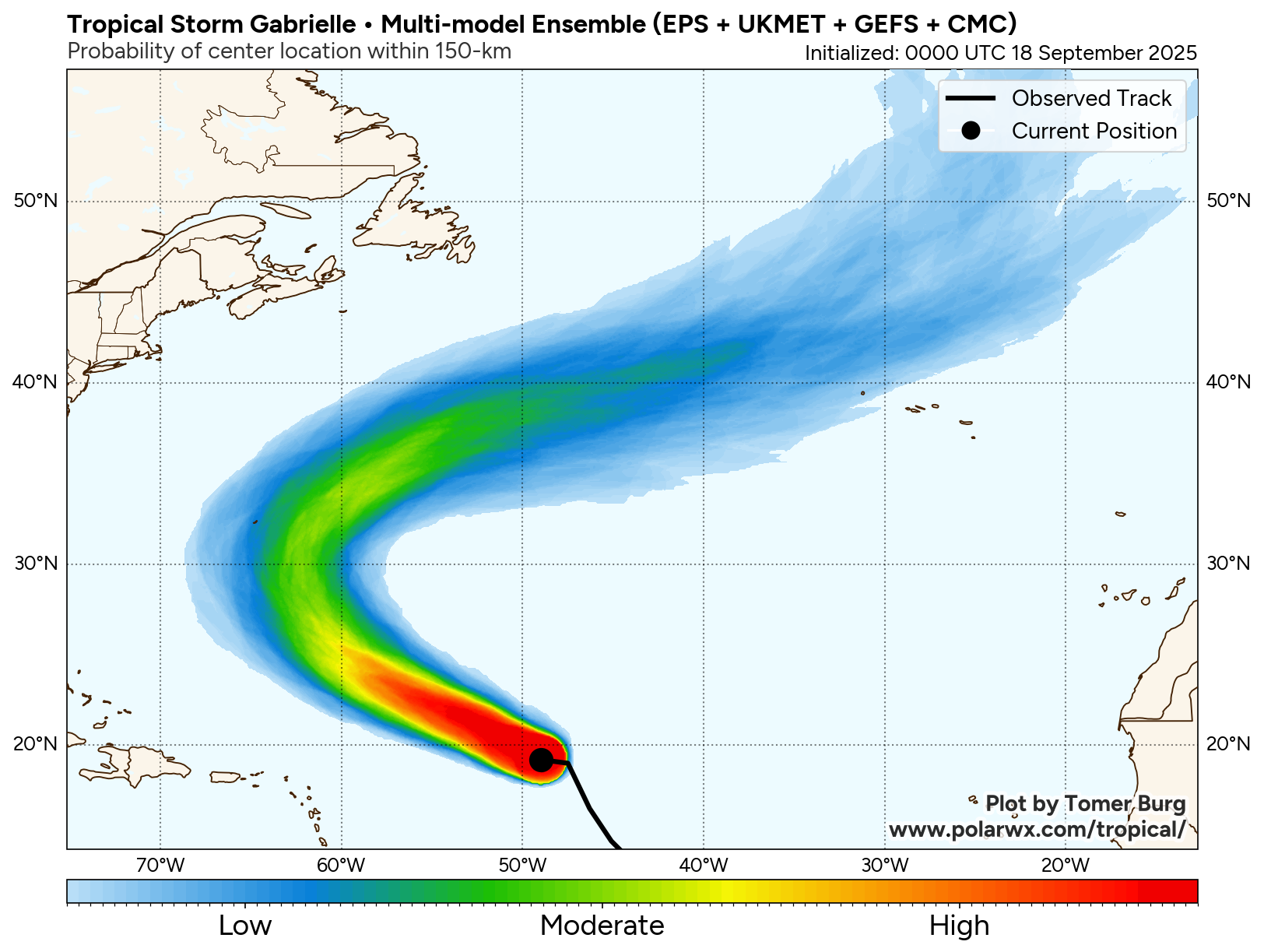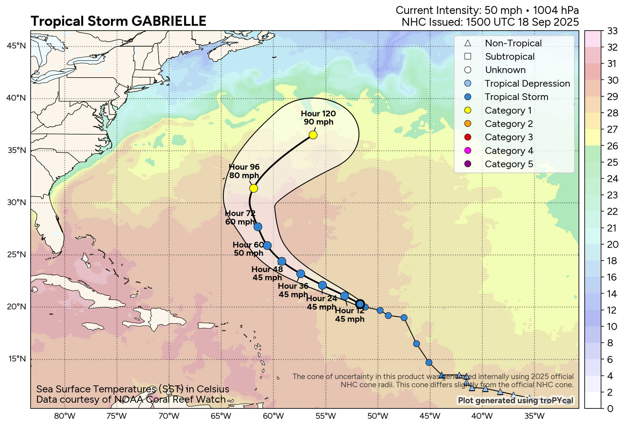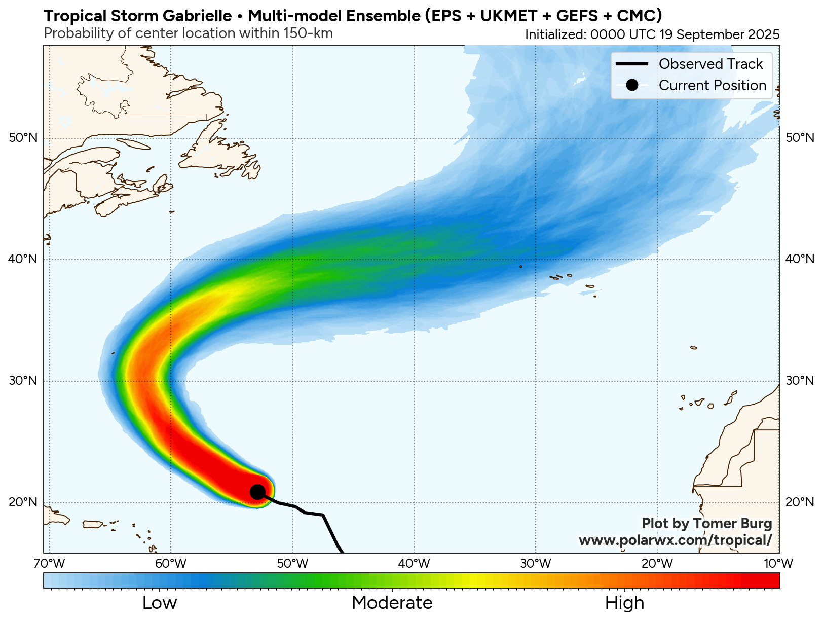 As for Bermuda – At the time of this writing, it looks more likely than not that Gabrielle will pass far enough to the east of the island to not be a serious threat. That being said, those of you in Bermuda should keep close tabs on the progress of the storm throughout this weekend just in case it trends closer to the island. For now though, the biggest threat from the storm looks to be rough surf and rip currents.
