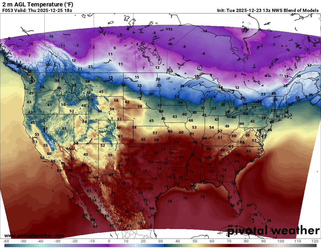 Forecast High Temperatures On Christmas Day: