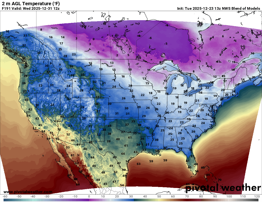 Forecast Temperatures For New Year’s Eve Morning: