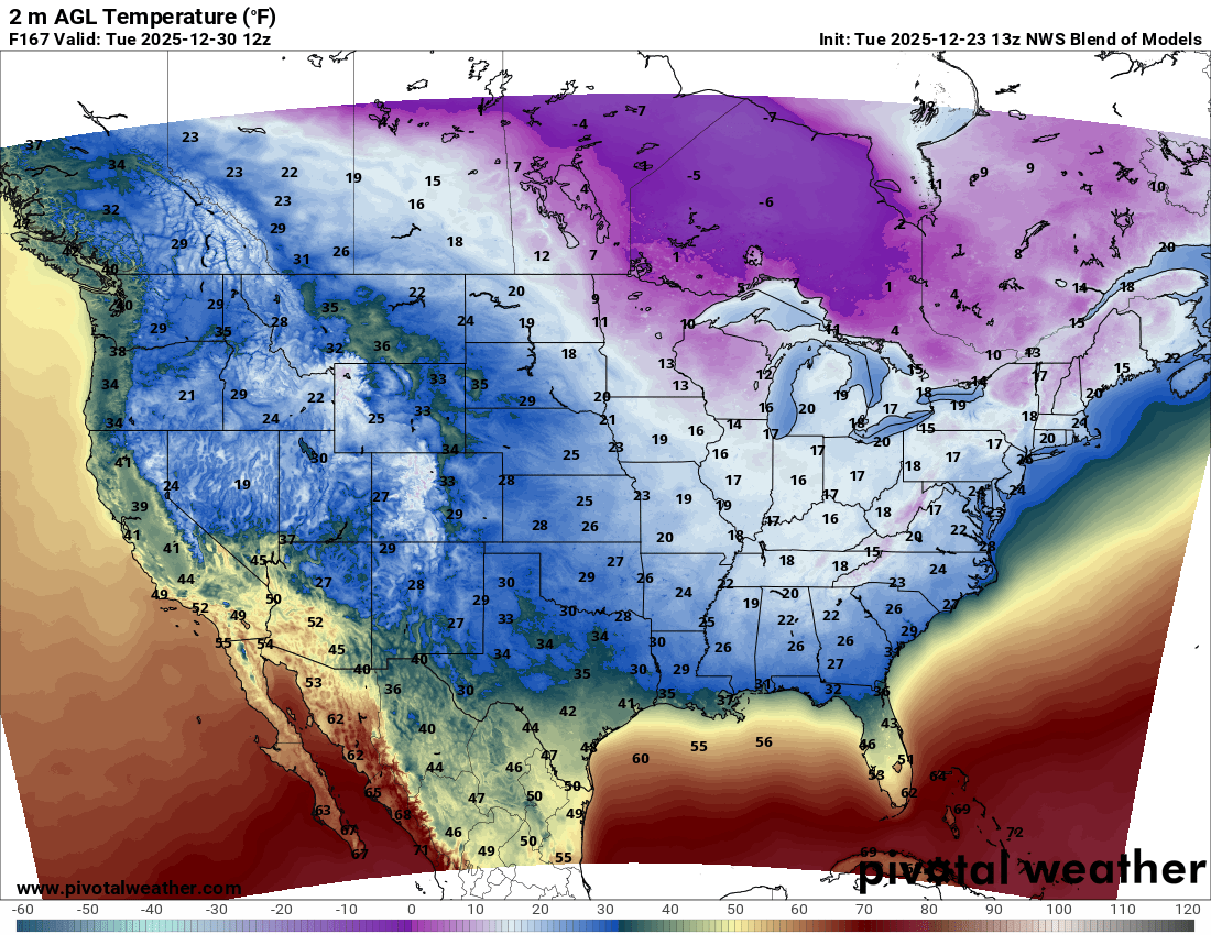 Some of the areas that will see record high temperatures on Christmas Day include Wichita, Kansas, Childress, Texas and Kansas City. Unfortunately, you will need to go to the Dakotas or northern New York and northern New England to see a postcard snowy Christmas Day as 60 Degree temperatures will make it as far north as northern Virginia and parts of the lower Ohio Valley.